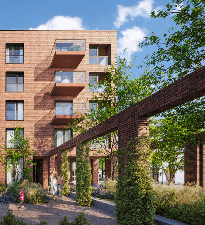 Przestrzenie wspólne sprzyjają relacjom – plac sztuki, ogród społeczny, plac historii, strefy rekreacyjne i bezpieczny plac zabaw tworzą naturalne miejsca spotkań i codziennej integracji.