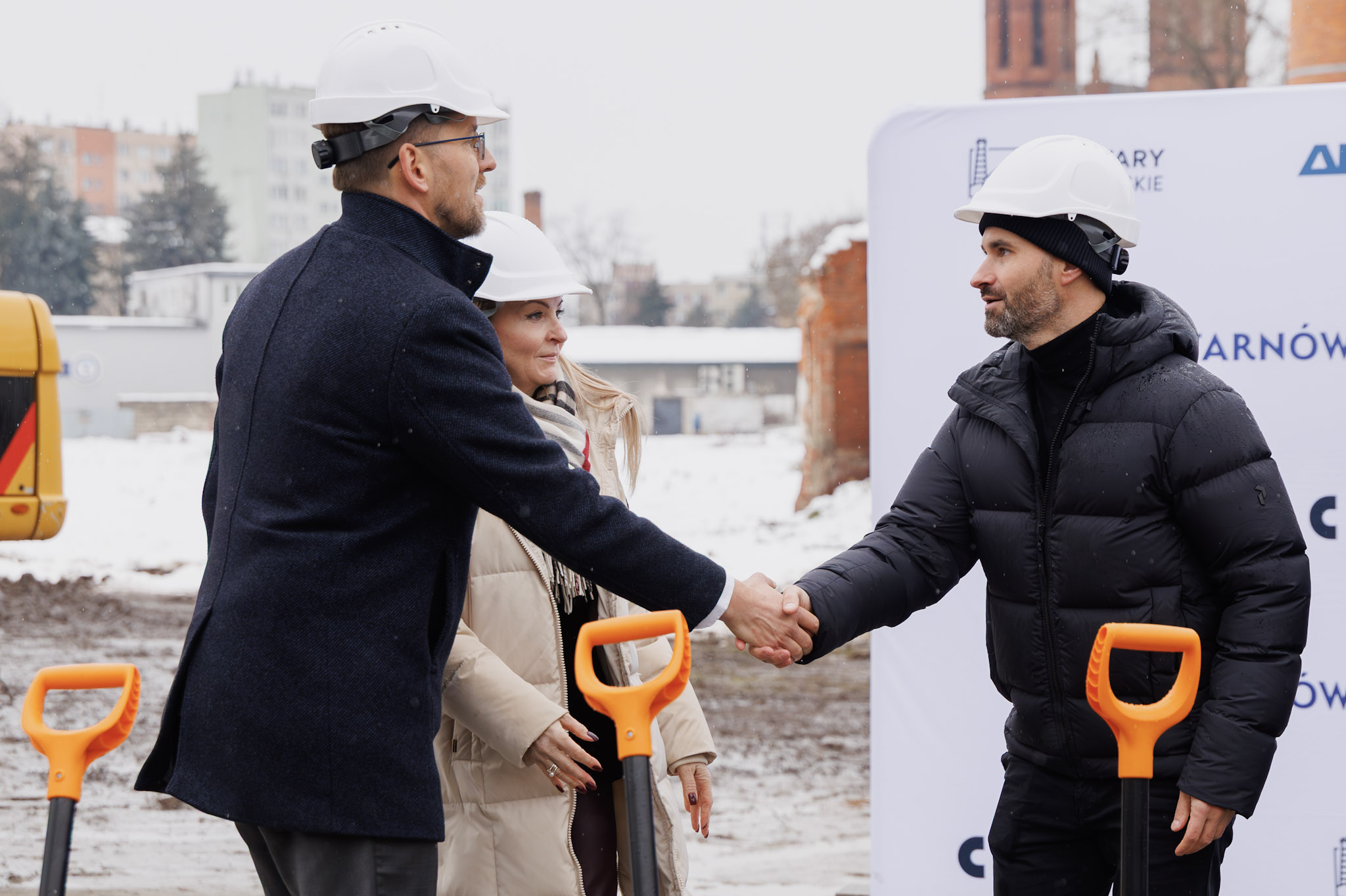Widok budynku B2 i placu offowego - ujęcie zimowe