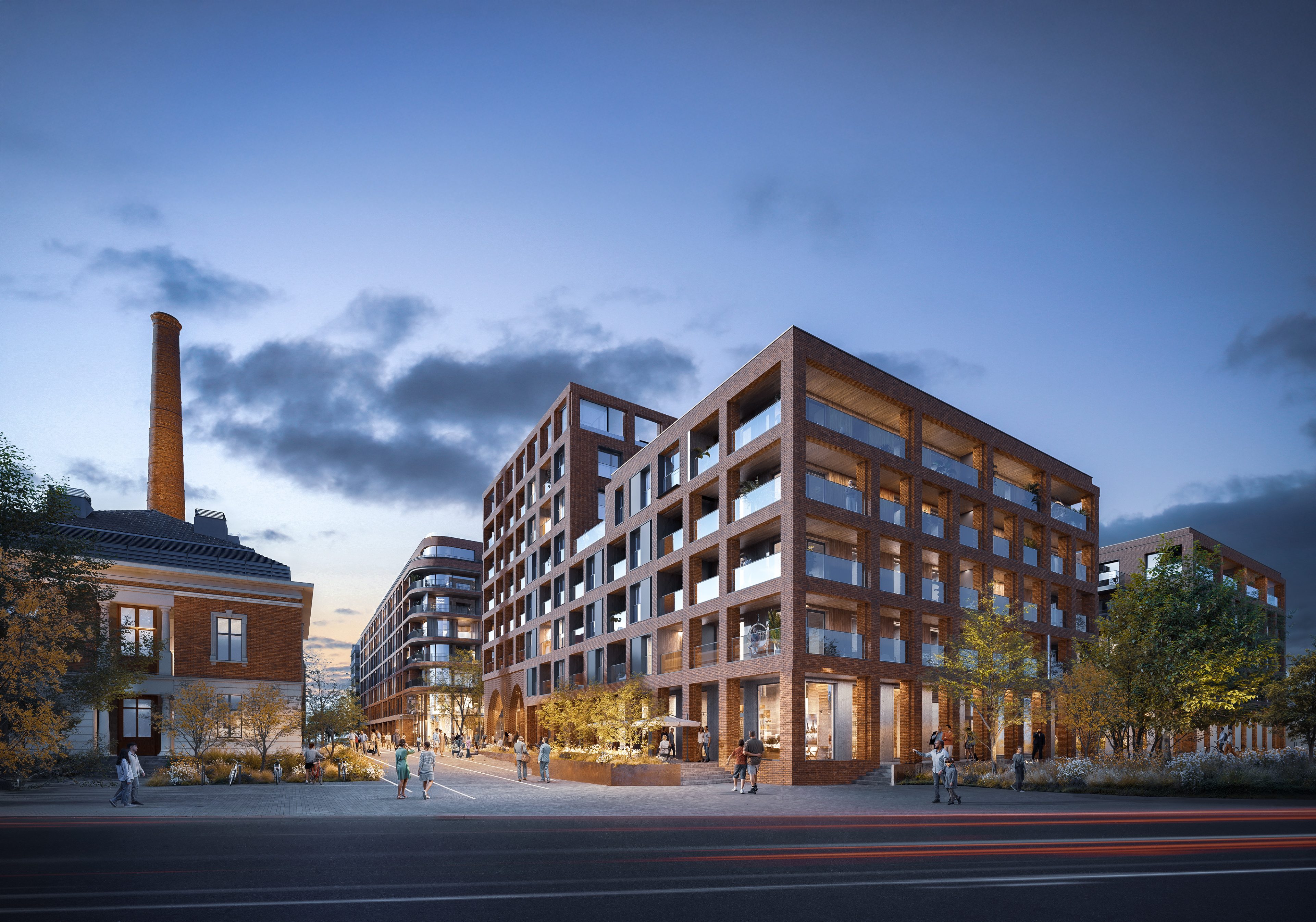Widok inwestycji z lotu ptaka - ujęcie nocne