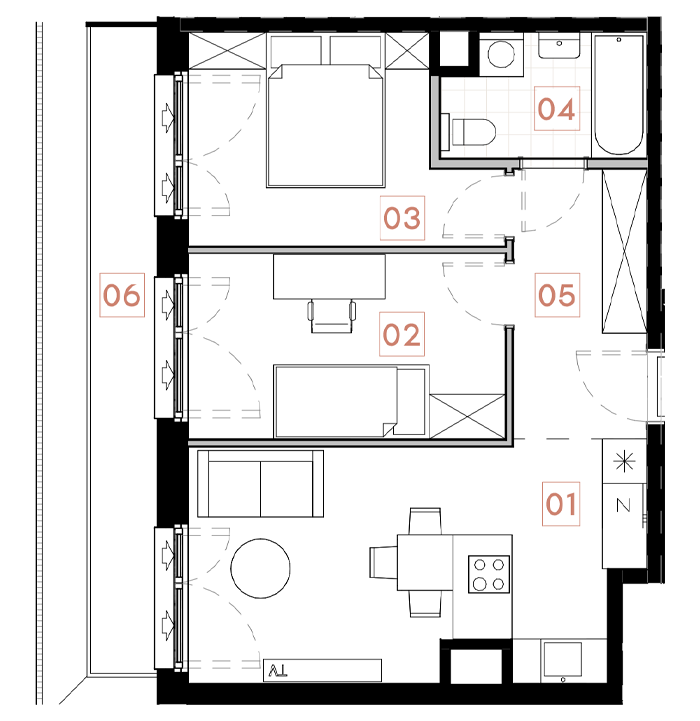 Budynek 1.1|Klatka 1|Piętro 7|3 pokoje