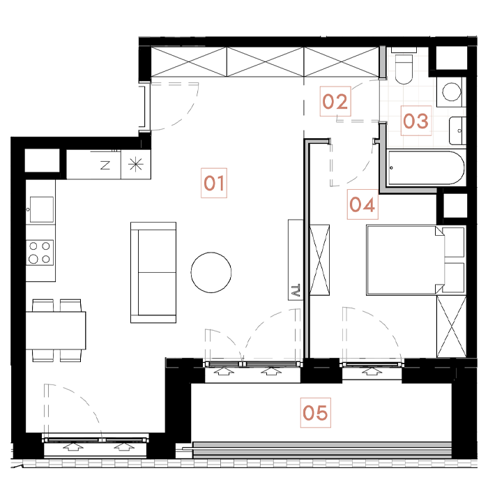 Budynek 1.2|Klatka 1|Piętro 5|2 pokoje