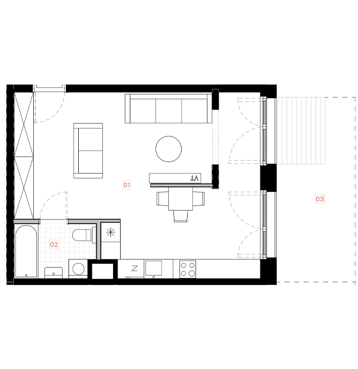 Budynek 1.3|Klatka 1|Piętro 0|1 pokój