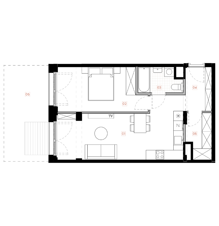 Budynek 1.3|Klatka 1|Piętro 0|2 pokoje