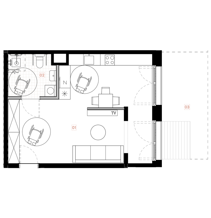 Budynek 1.3|Klatka 2|Piętro 0|1 pokój